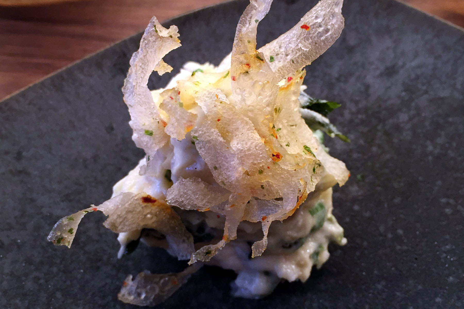 Momotaro Tartare is presented with these cute wooden spoons, which also smile at you in the right light. We're making jokes at this point because we're beyond full and somewhat delirious.
