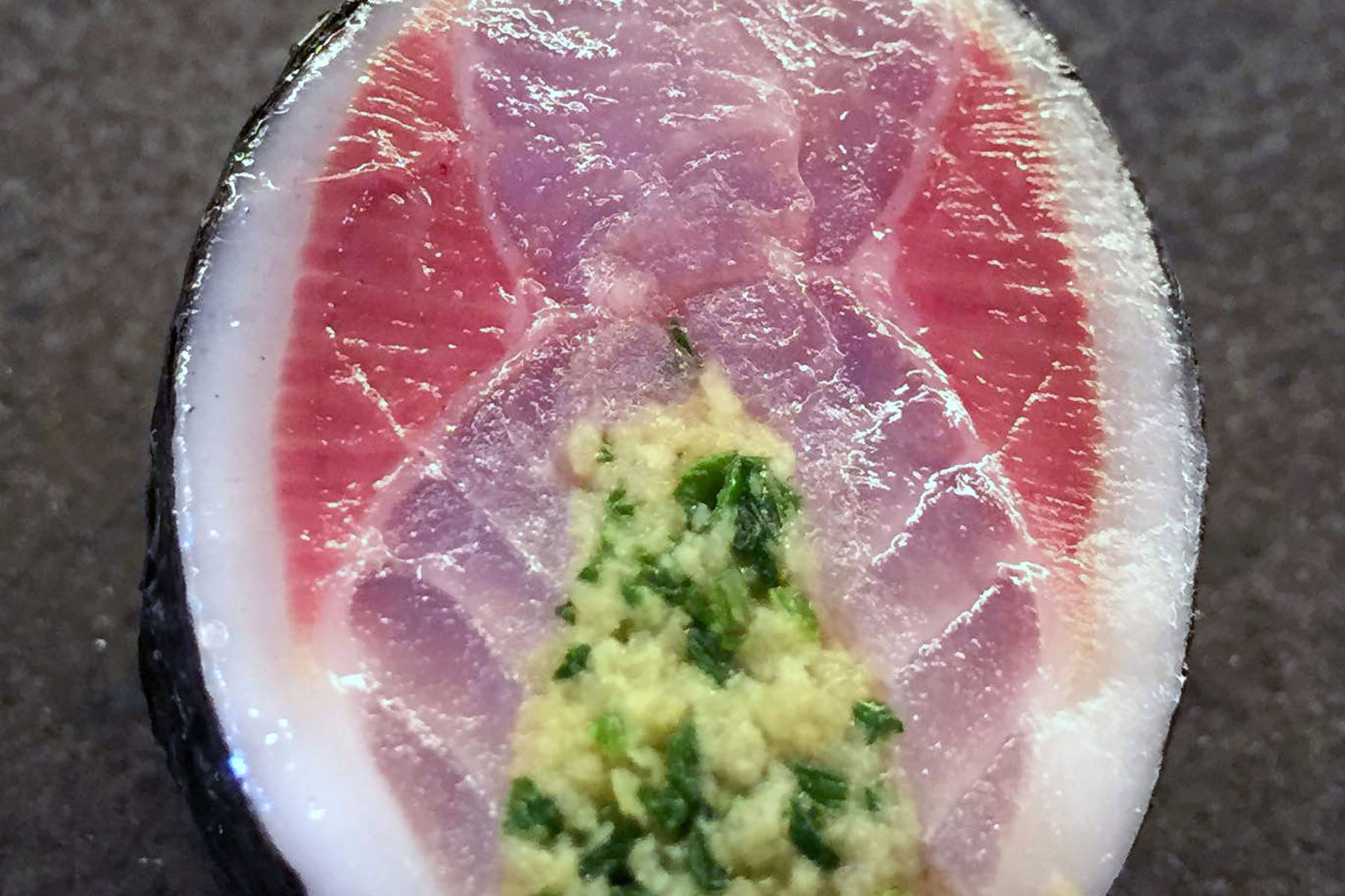 The seared Kurosawa Saba Megamaki looks beautiful and tastes even better.