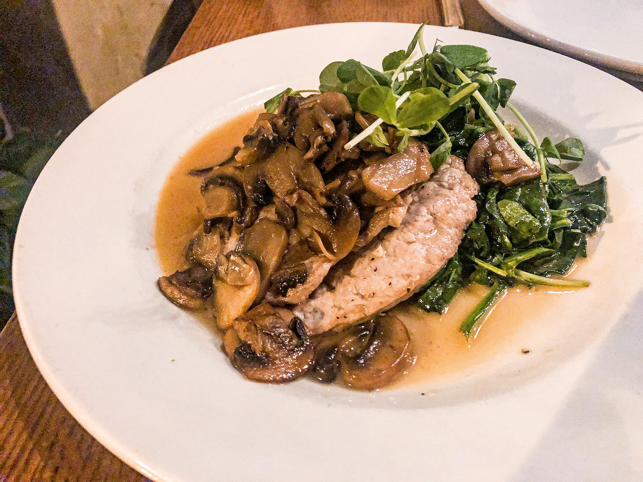 To contrast with the richness of the Cacio e Pepe or any of the pasta options, we recommend the tender Vitello Marsala. Lightly sauteed veal scaloppine, garlic spinach and mushrooms soak up a slightly sweet marsala wine sauce. The portions are quite manageable for one person but if you’re in the mood to share a plate of pasta and a fish or meat entrée, that would be the way to go!