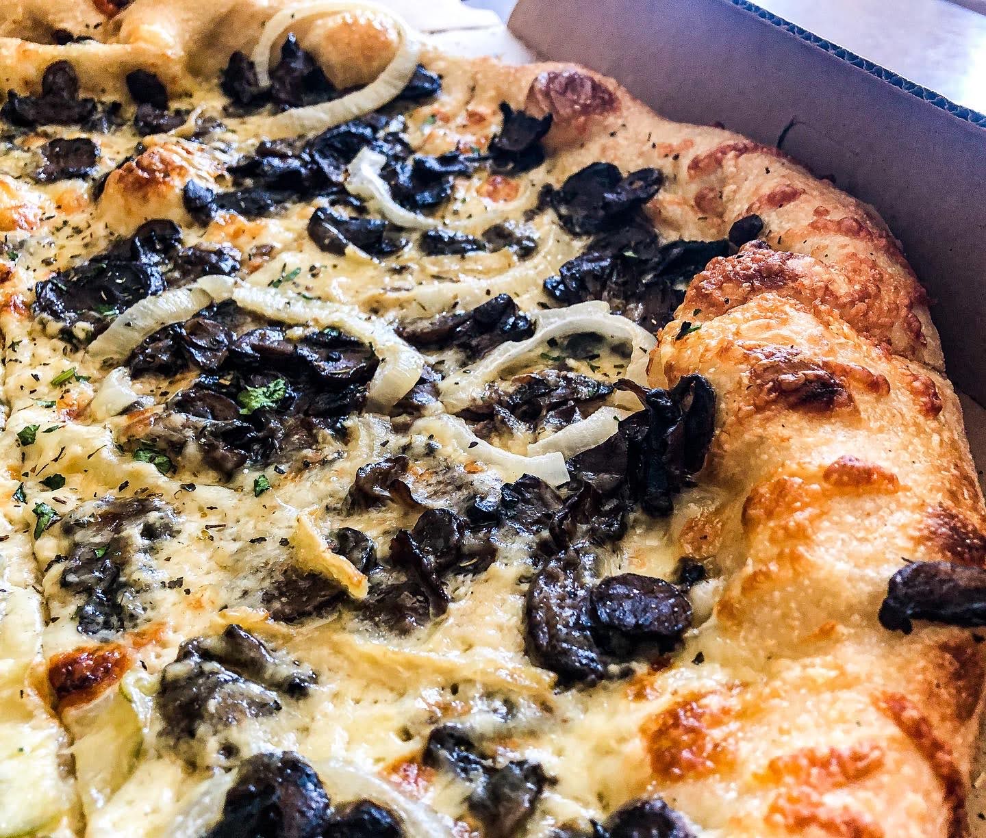 Mushroom - the simple but outstanding mushroom pizza features a blend of wild shrooms layered with onions and a creamy brie, adding to this beautifully-textured pie.
