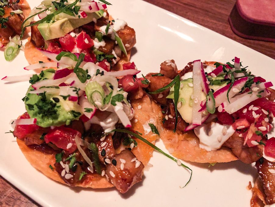 In addition to winning awards for their wines, Cooper’s Hawk boasts an award-winning appetizer in the form of their Asian Pork Belly Tostadas ($11.99). The fatty cubes of pork are tossed in a sweet chili BBQ sauce and adorned with simple ingredients like scallions, sesame seeds, cilantro and radish for a necessary burst of color. Enhance your taste buds and sip on the recommended glass of Cab Zin.