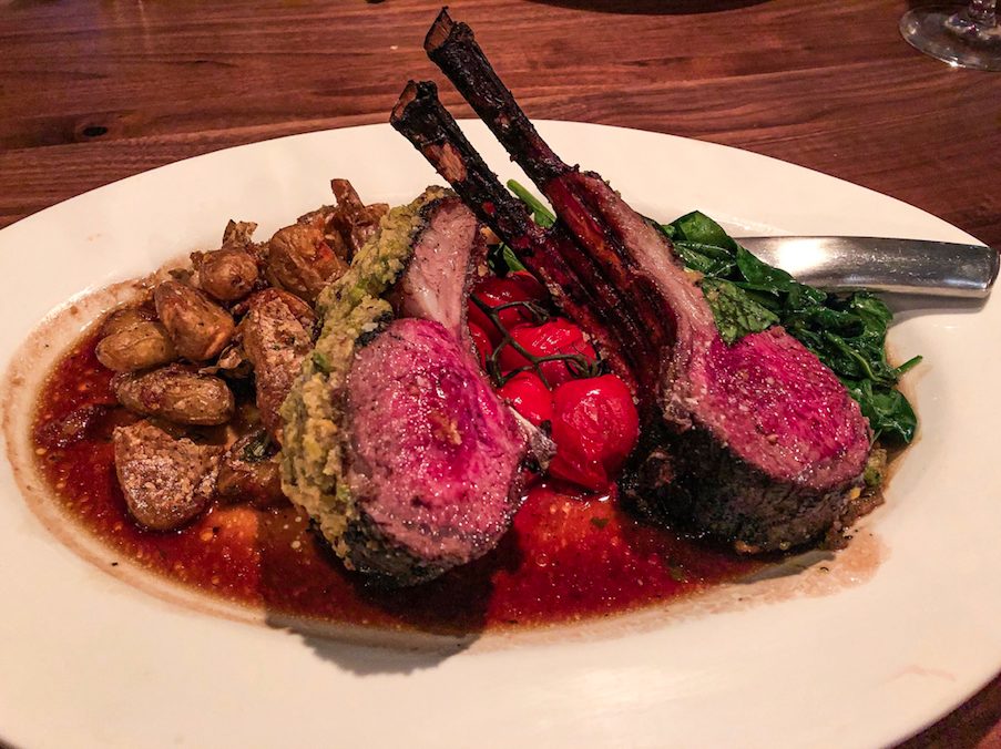 Treat yourself to the mouthwatering Pistachio-Crusted Australian Rack of Lamb ($49.99). Cleanse the palate with the accompanying garlic spinach, crispy potatoes and blistered tomatoes swimming in a tarragon jus. A lamb from down under calls for a Shiraz to round out this international dish.