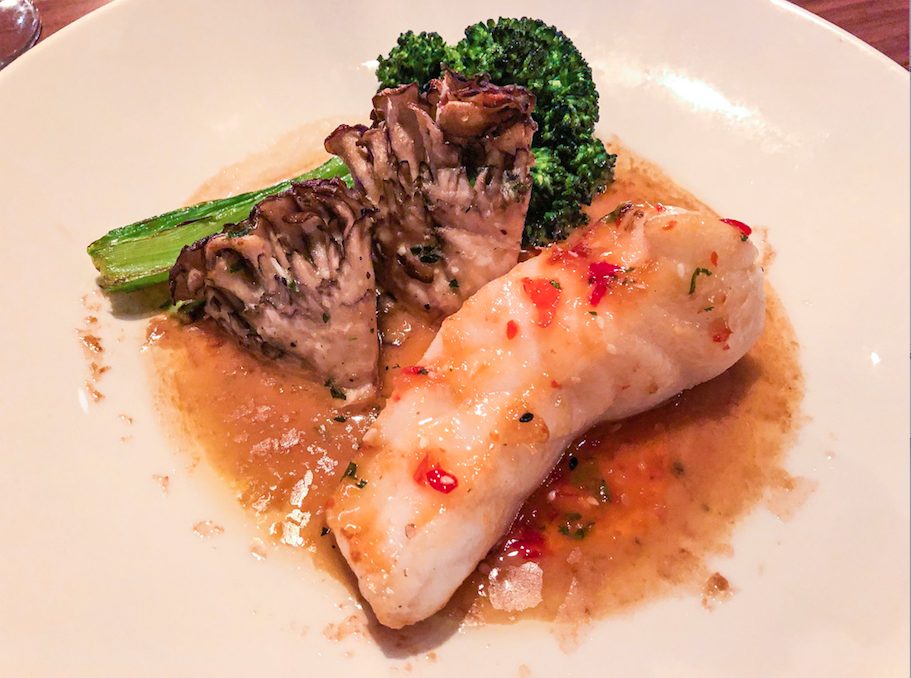 In the mood for lighter fare? Keep things delicious and healthy with the Miso-Glazed Chilean Sea Bass ($35.99). Paired with a harmonious Riesling, the buttery bass pairs impeccably with the accompanying roasted maitake mushrooms and broccolini, lightly showered in a soy-lemon butter. Those flavor notes splendidly partner with a semi-sweet Reisling.