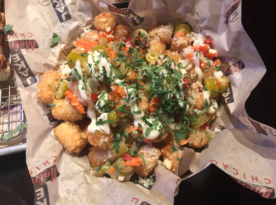 Although Jake’s boasts a lot of consistent bar food on its ‘Starters’ menu, we definitely recommend beginning your meal with the Titanic Tater Tots ($9.95) which can be found in the ‘Sides’ section. The tots are loaded with parmesan, truffle oil, Chicago-style giardiniera and garlic aioli. Warning: these are greasy but the combination of flavors and the bite-sized taters make for an addictive appetizer. The portion size is rather large for a side but if you have any leftover, make sure to take them home as they are even better warmed up in the oven the next day!