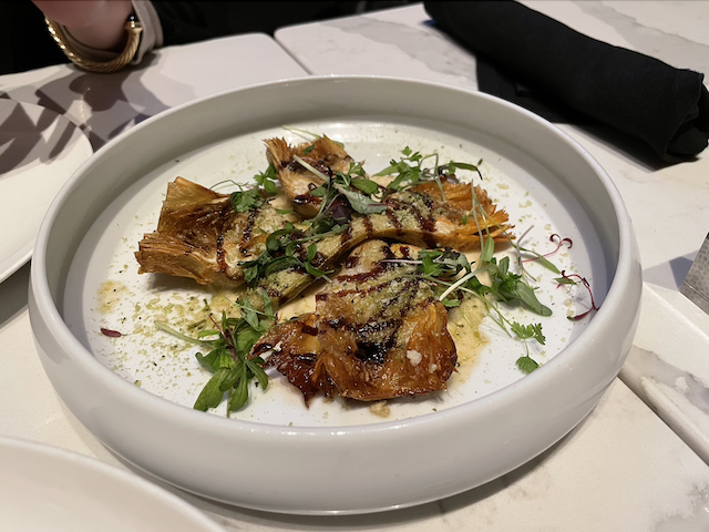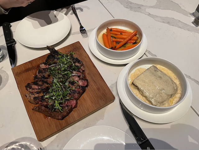 Guests can (and should) really splurge on the Albert’s Ribeye, a whopping 24oz, bone-in slab of meat. Crusted with a holy combination of garlic and herbs, this mouthwatering cut will have meat-lovers rejoicing! Throw in veg-forward sides like the Crispy Brussel Sprouts, Honey Mint Glazed Baby Carrots or Layered Potato Torte, and you have yourself a well-rounded dinner course.
