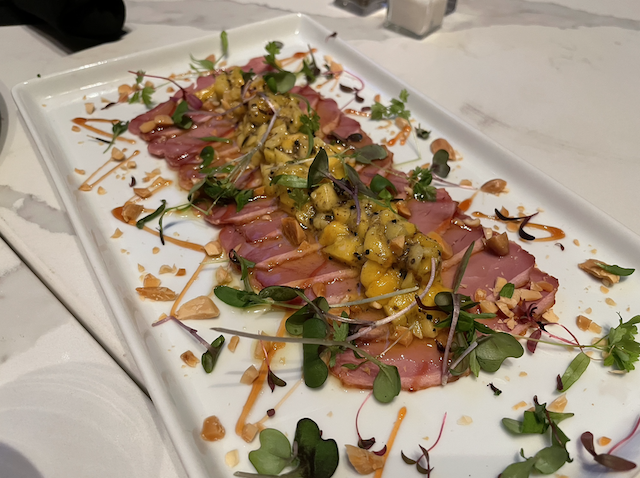 Rounding out the antipasti course, the Smoked Duck is delicate yet stunningly flavorful. Topped with fresh bits of mango and a subtle black truffle relish, each perfect slice of fowl will melt in your mouth and your plate will be empty before you know it.