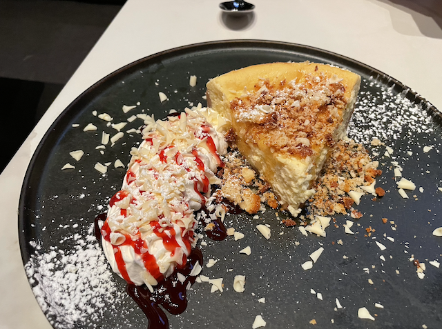 It was too late in the evening for the caffeinated Affogato Bomb but the tableside presentation and mysterious delight within intrigued me enough to take a few bites. Presented in a short martini glass, the spherical, flourless chocolate cake encapsulated a treasure of mascarpone gelato and Illy espresso, before slowly melting from the cascading waterfall of caramel sauce. Rich and almost boozy tasting, this dessert puts the ‘cap’ in nightcap.
