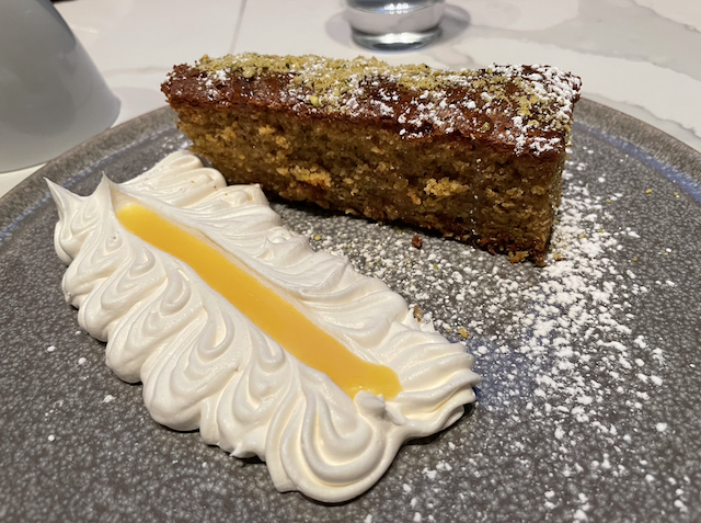 Based on Chef Chiappetti’s family recipe, the Olive Oil Cake literally takes the cake in the dessert category. Crunchy bits of pistachio and flowered honey lend texture and a slightly darker color to a normally smooth, lighter-hued cake. Swipe your forkful through the river of sweetened cream and orange curd so that each flavor profile can hit your palate.