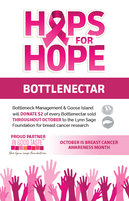 Bottleneck Management’s Chicagoland restaurants (Sweetwater, Old Town Pour House, South Branch, City Works in Wheeling, Vernon Hills, and Schaumburg) offer Hops for Hope this October.