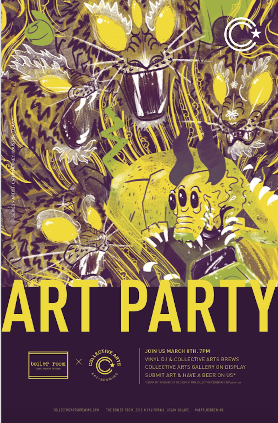 Grab your comrades and come on down to Boiler Room while they team up with Collective Arts Brewing for the “Collective Arts Brewing Art Party" this Thursday, March 8th at 7 PM.