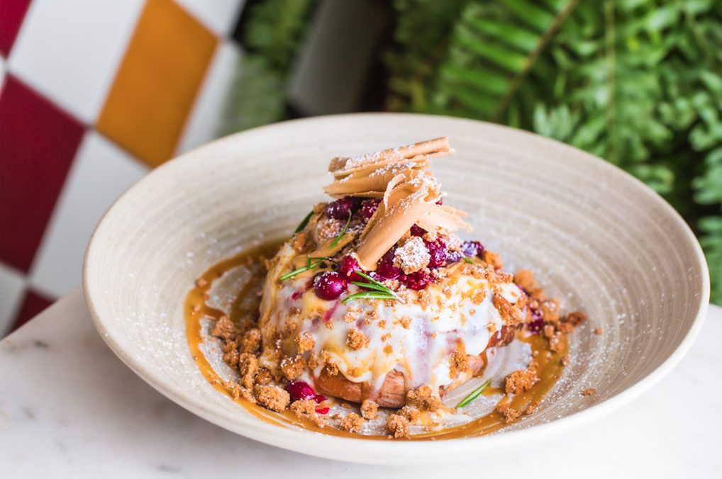 Diners can still get a taste of home with the Cinnamon Roll ($14) a traditional cinnamon roll with brown sugar cinnamon and cream cheese frosting, but topped with homemade cook butter and a cranberry-orange compote for fall.