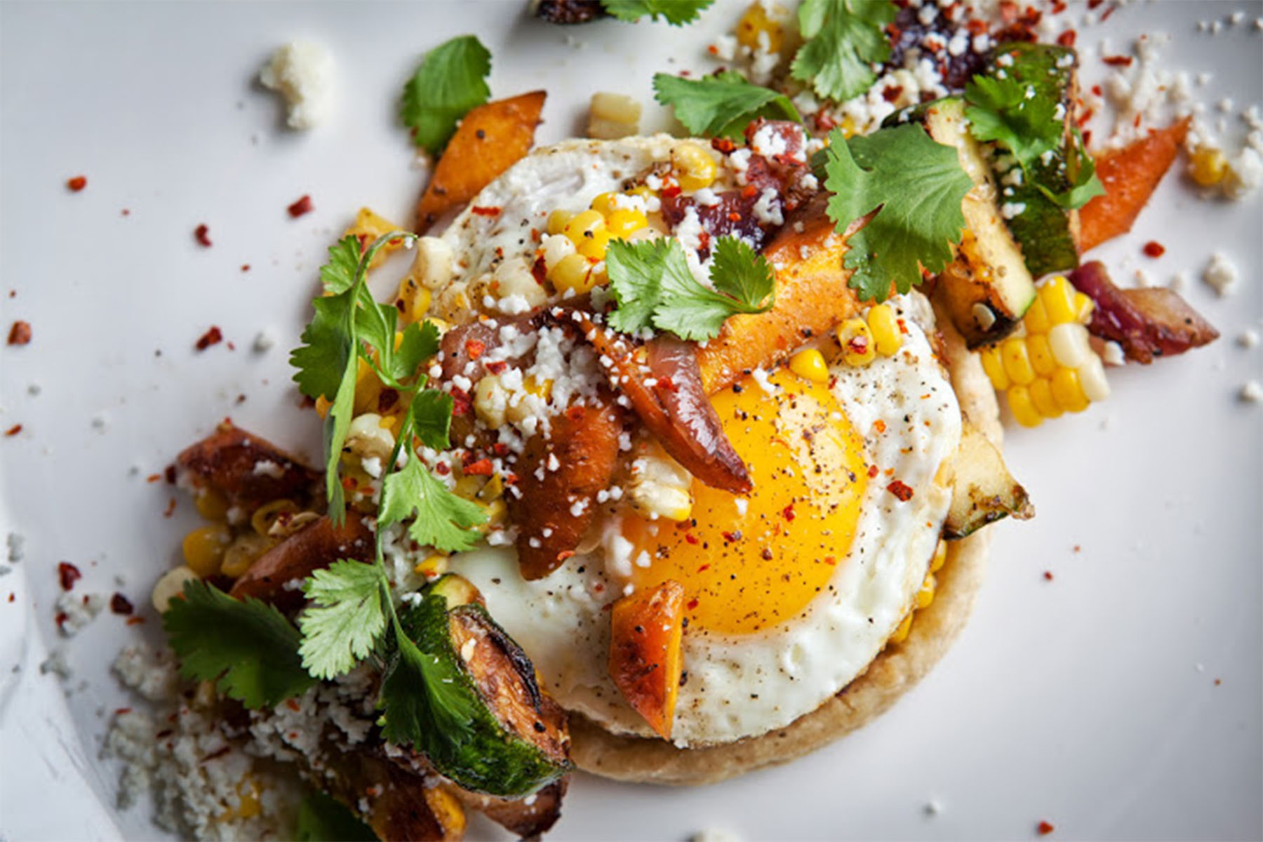 Vegetable Sope – seasonal vegetables | queso fresco | fried egg | morita salsa | sesame | Urban Till arugula 9.5Explore This Topic