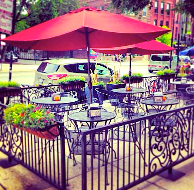 Flower-lined patio dining at MAK: Modern Asian Kitchen.