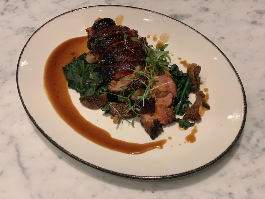 § Whole Roasted Muscovy Duck | chestnut stuffing, ramp soubise