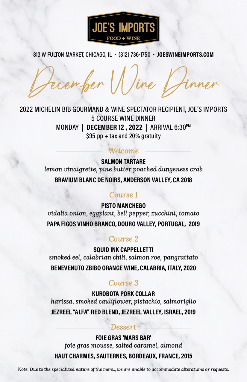 What to know about Joe's Imports Hosting Wine Dinner January 23rd