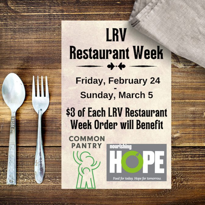 Dining guests may enjoy the choice of any small plate, large plate and dessert for $45 per person. Three dollars from the price of each prix fixe will be donated to Common Pantry and Nourishing Hope.