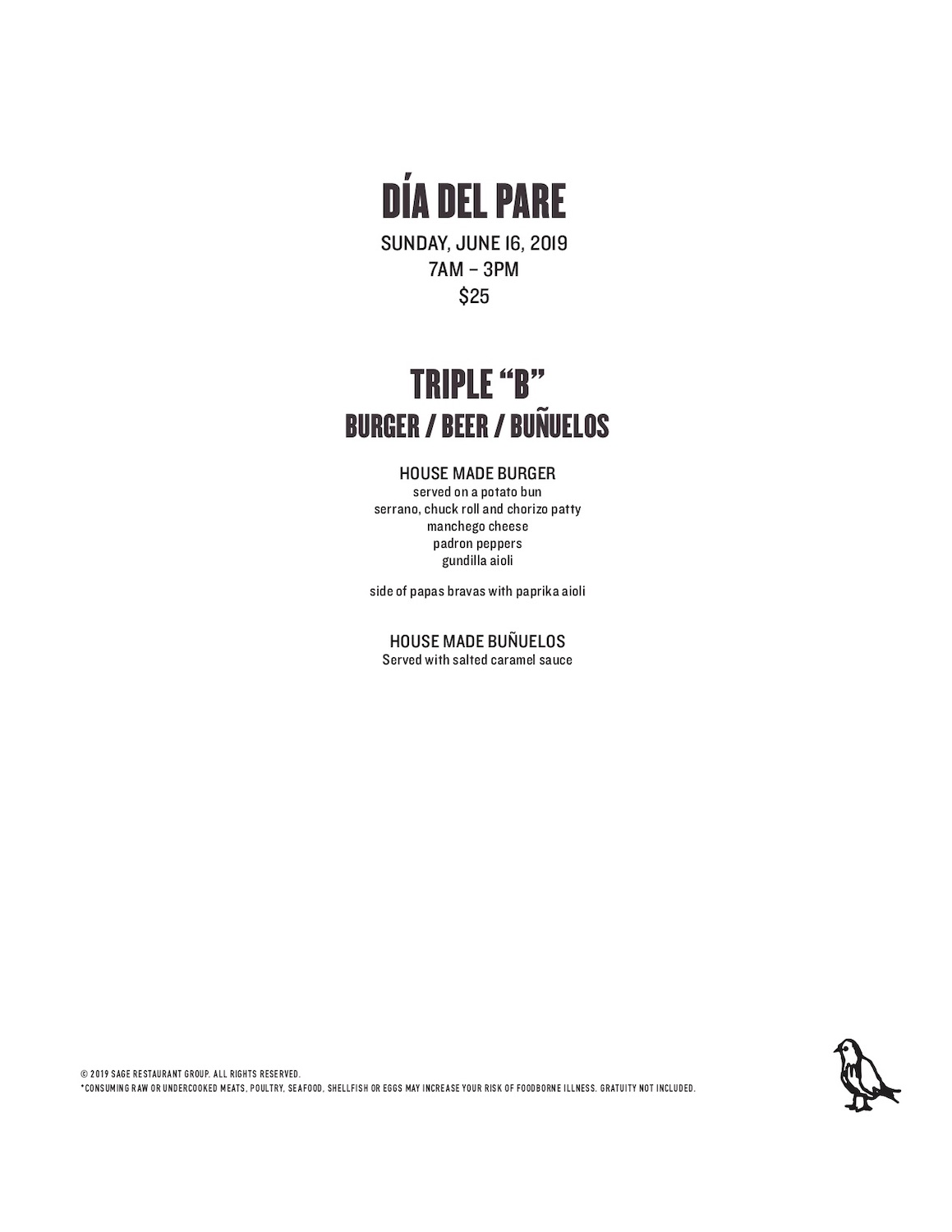 This “Día del Pare” Mercat a la Planxa celebrates all dads with a Triple “B” Brunch featuring a Burger, Beer and Buñuelos. Treat dad to a house made Spanish-inspired burger with a serrano, chuck roll and chorizo patty topped with manchego cheese, padron peppers, and gundilla aioli served on a potato bun with a side of papas bravas with paprika aioli. Aside from the burger, the prix fixe brunch also includes an Estrella beer, and house made buñuelos, Spanish-style beignets, served with a salted caramel sauce. The prix fixe brunch costs $25 per person.