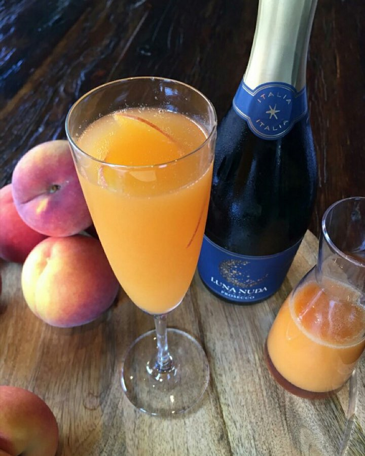 Luna Nuda Prosecco, choose from: white peach puree, apricot puree, fresh squeezed orange juice, pineapple juice, pomegranite juice, grapefruit juice