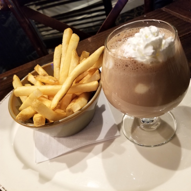 French Fries with a Shake served with a chocolate-peanut butter beer shake for dipping (21 and up) one hitter $5, bowl $8, bong $11