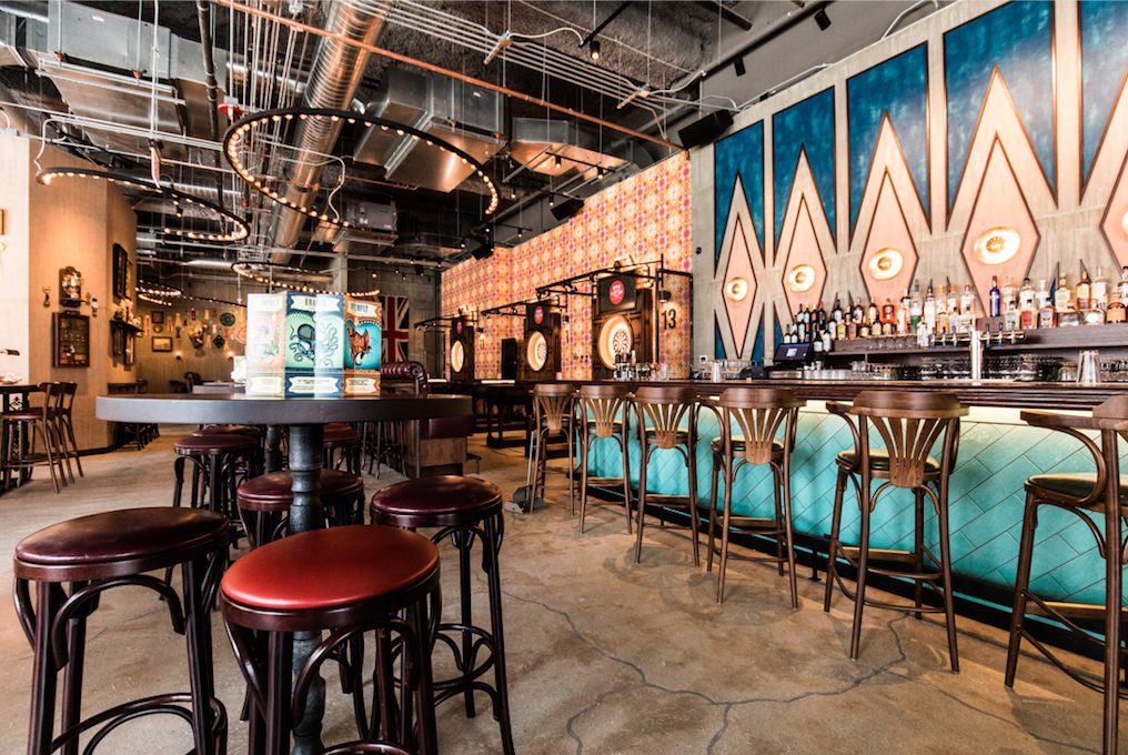 This South Loop rooftop bar, which opened its doors in October of this year, touts over 13,000 square feet of indoor and outdoor activation areas, including a karaoke room, boardroom, club bar, and solarium bar. With water and fire fountains on the exterior, along with the Chicago skyline as the backdrop, guests are able to revel in rooftop season all year long, while also enjoying an interior that includes a sweeping 40 stool main bar, a video wall and an abstract mural.