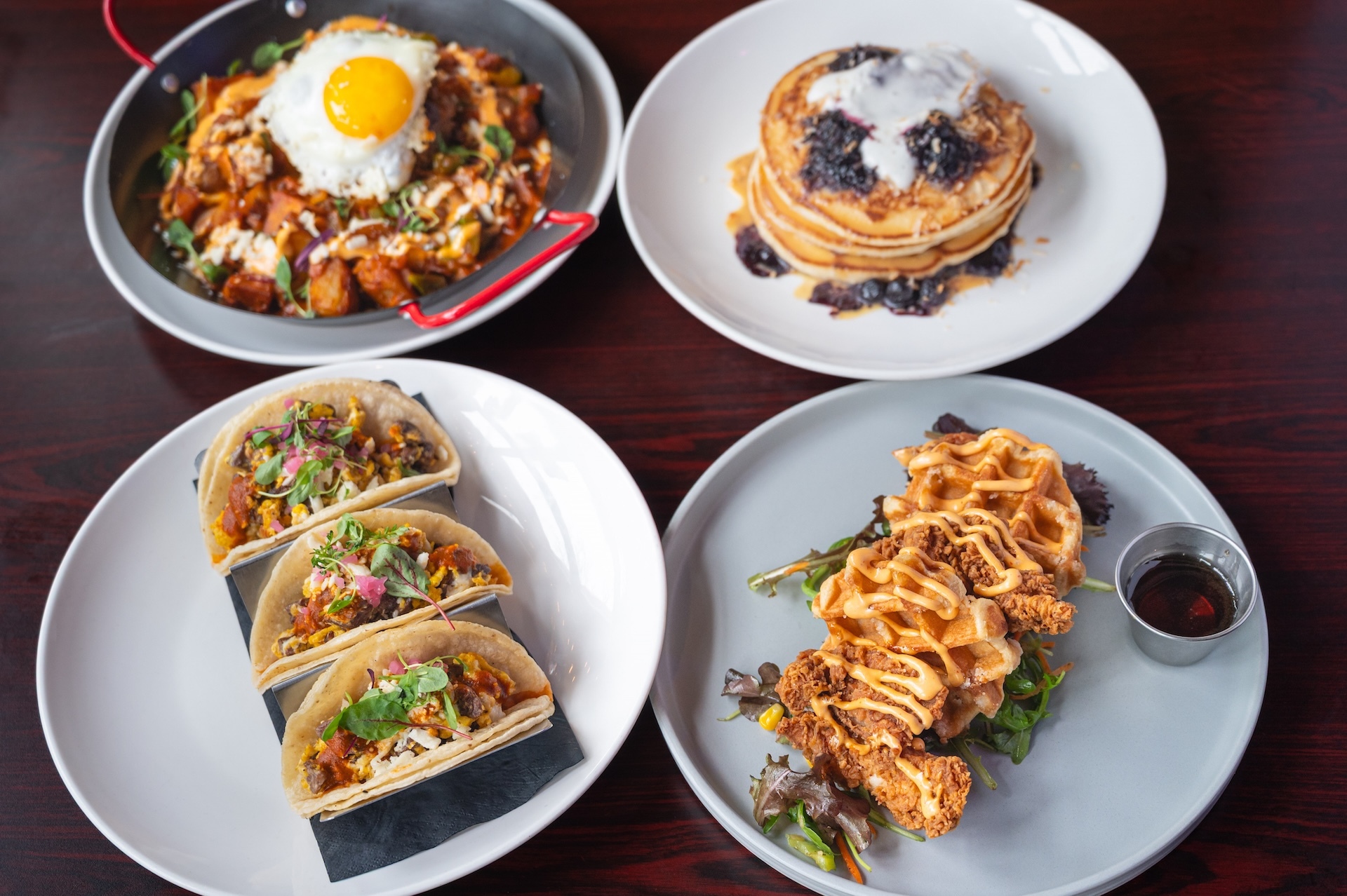 Classic brunch favorites like fried chicken & waffles and French toast
