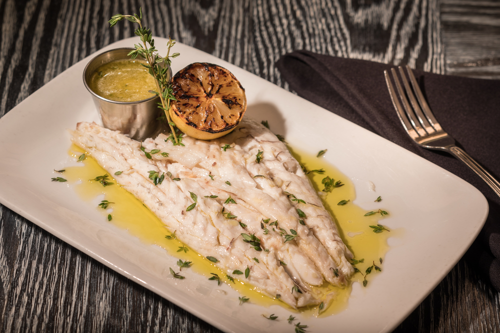 Whole Bandera Branzino – an European Sea Bass that is encased in a salt dome, roasted to steamed perfection, presented tableside and plated with an Agrodolce sauce ($49.95)