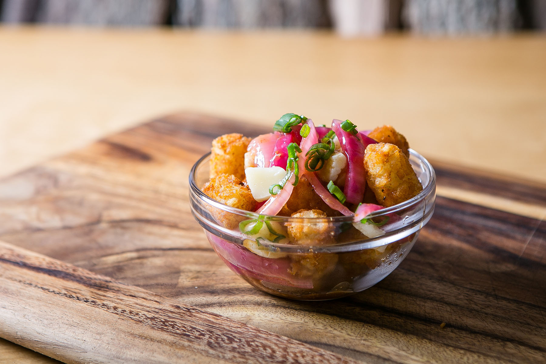 a spin on poutine that includes crispy tater tots and