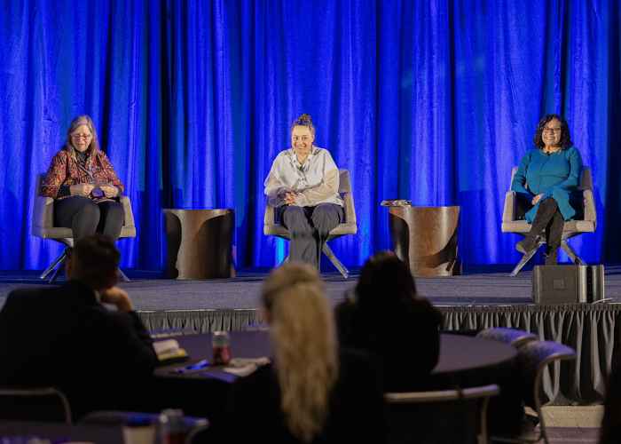 Sarah Stegner on stage with Disability Matters panelists