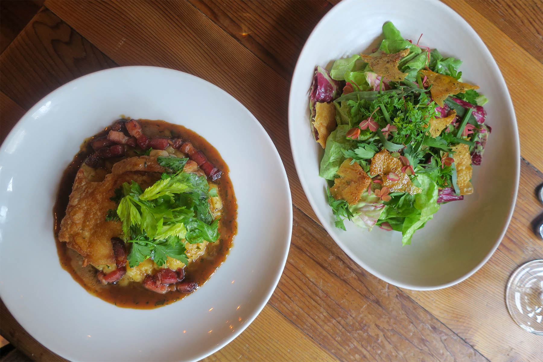 2nd: Bib lettuce salad, green goddess dressing, chicken cracklins, fines herbes