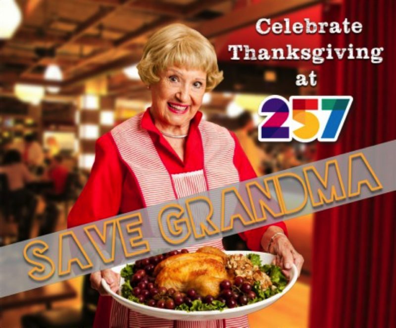 Let Nana have the cooking duties off this year (and save yourself from the dishes) by bringing your family to Level 257 for Thanksgiving. $30 per adult and $15 per child for an all-you-can-eat buffet (kids 6 and under eat free)!