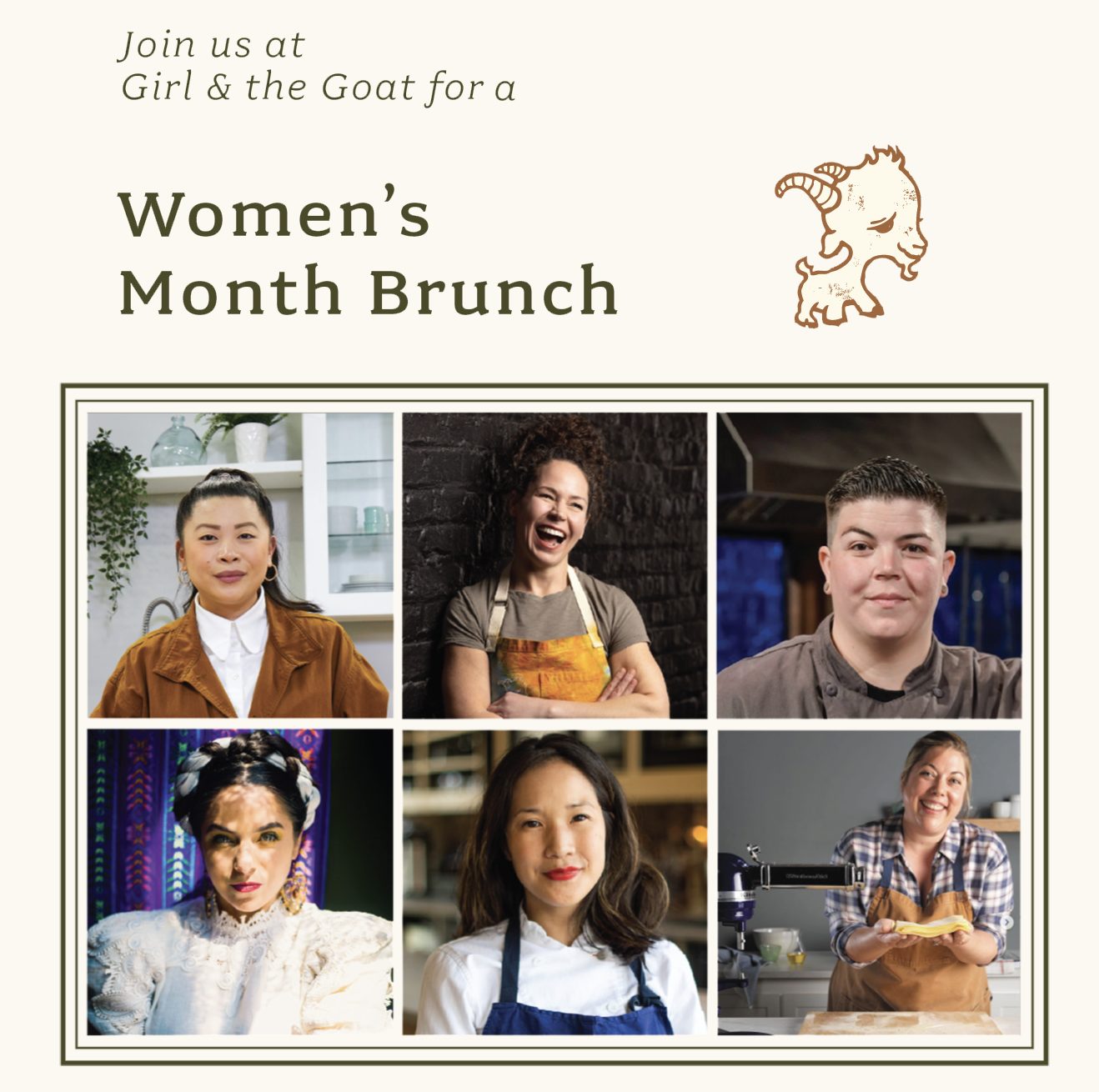 A line-up of female chefs at Girl & the Goat on March 25th to celebrate Women's History Month. Chef Stephanie Izard called together a group of chefs, including Chicago’s own, Diana Davila, Beverly Kim, and Sarah Grueneberg, along with some of Steph’s Food Network buddies, Mei Lin from LA and Britt Rescigno from New Jersey. Together, they will host a brunch at Girl & the Goat to benefit The Abundance Setting, Beverly Kim’s charity that encourages and supports the advancement of women and working mothers in the culinary and hospitality industry. Not only will these chefs bring their culinary prowess to the kitchen, they'll also be sitting down for brunch, providing the opportunity for guests to learn about their journeys as women in the restaurant industry. To top it off, guests will be offered a wine flight curated by Girl and the Goat's sommelier, Shea Zimmerman, featuring women in wine. Tickets are $125 and can be purchased here: Women’s Month Brunch on OpenTable.