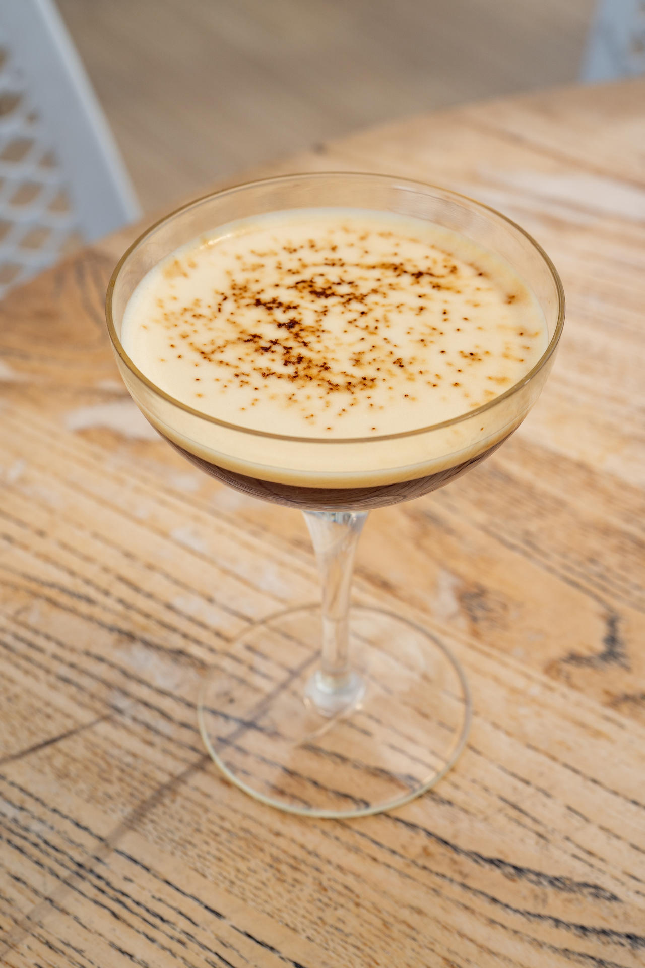 Komos Espresso Martini: made with premier Komos Añejo Cristalino Tequila, St. George Nola Coffee Liqueur, and Crème de Cacao.