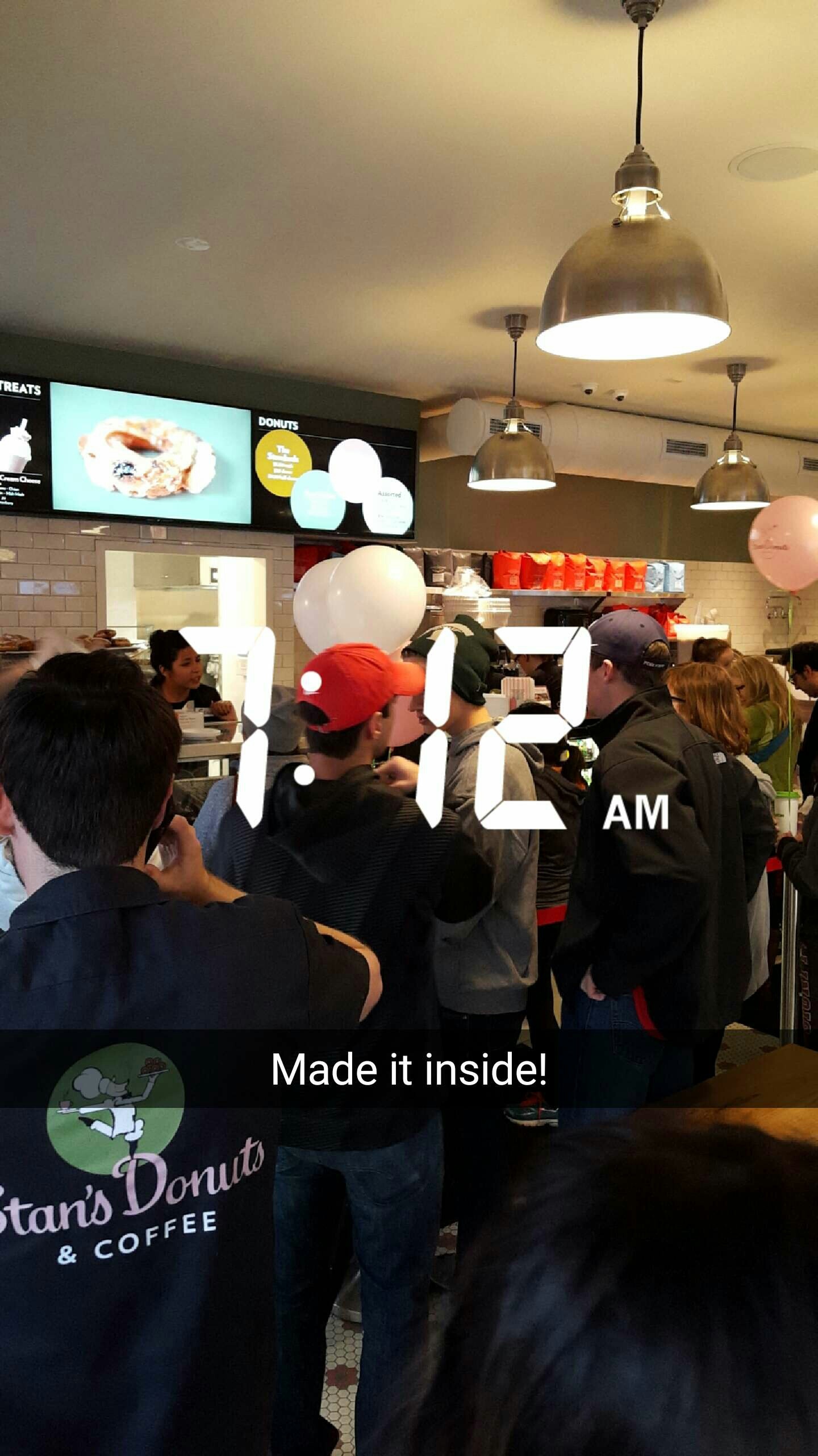 Around 6am there finally began to be some action near the front. Balloons were passed out, and the line condensed in anticipation of the opening. The sun began to rise, illuminating just how many people had rolled out of bed to be the first to get donuts. It was surprising, even to a donut fanatic like me – the line stretched more than two blocks with more coming all the time.