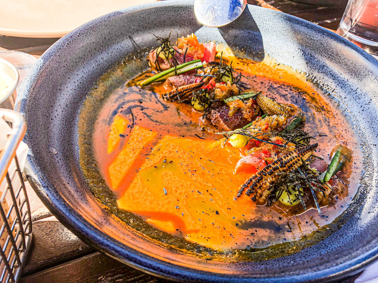 To add a bit of healthy veg to our lunch feast, we went for the Broccolini Chifero wading in a pool of smoky red bell pepper sauce, adorned with a Peruvian chili chimichurri and pickled sweet chilis. Great to add as a side to your meal!