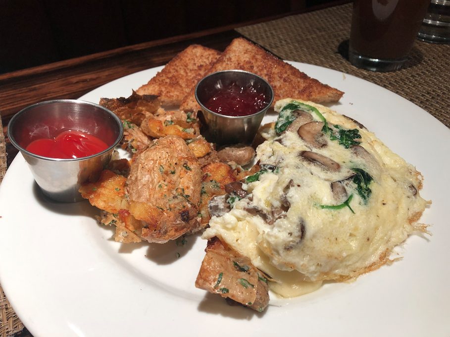 Lastly, the Egg White Omelette ($12) is impressively flavored with tender, roasted mushrooms, baby kale, melted gruyere and served with a side of-you guessed it-breakfast potatoes. The plate also comes with a slice of toast with homemade strawberry jam. Diners can opt for other sides including fresh fruit, breakfast sausage or applewood smoked bacon.