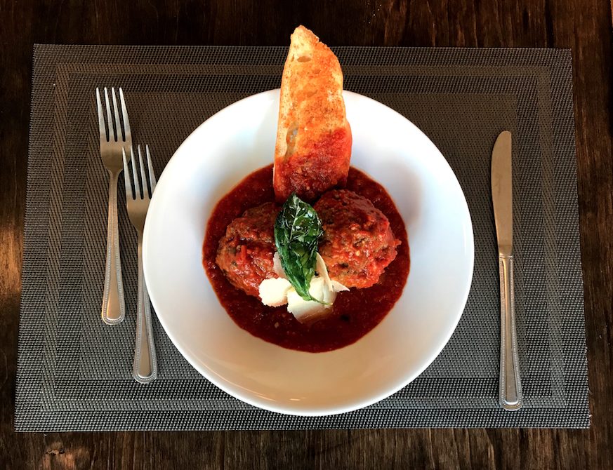 For starters, Mae’s Meatballs are unbelievable. Two huge spheres of an all beef blend arrive swimming in homemade marinara sauce topped with shaved Parmesan and a fried basil leaf accompanied by a slice of garlic bread. It’s almost a meal in itself but small enough to share if you are willing.