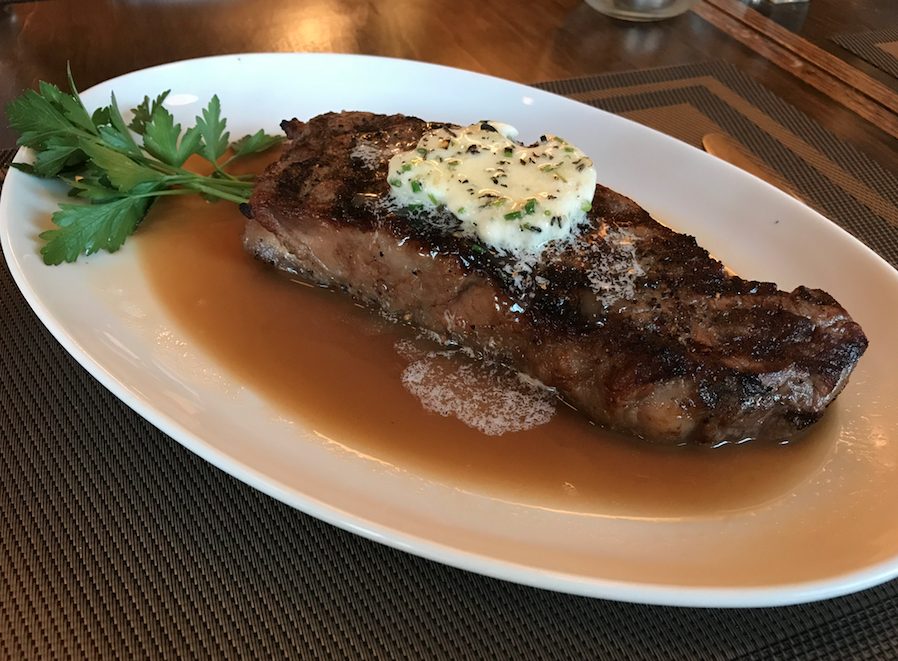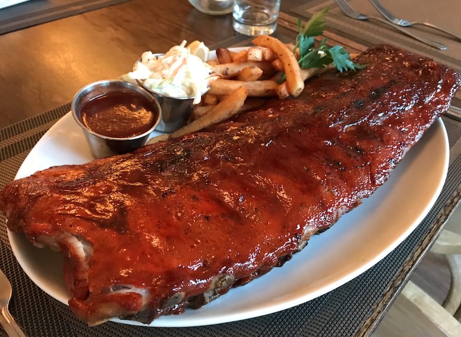 For meats, one can’t go wrong with the New York Strip. Cooked to your desired temperature, the steak arrives at the table with a disk of herb butter that is melted by a blowtorch right in front of your eyes. The St. Louis BBQ Ribs also shine at a place that doesn’t focus on BBQ. Guests can order a half rack or full accompanied by hand cut salt and pepper fries, coleslaw and a side of extra BBQ sauce because everyone always needs more sauce!