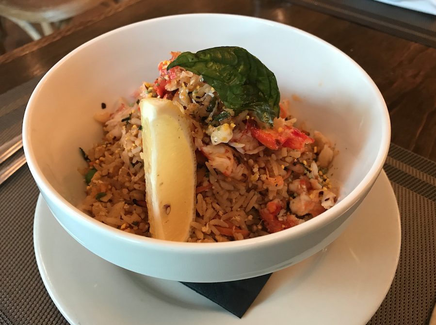 The King Crab and Kimchi Fried Rice highlights the entrée part of the menu. Served with warm shredded crab and five seasonal vegetables, this fried rice has intense flavor in every bite!