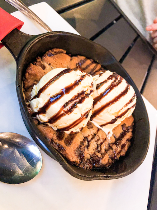 A friend of mine told me recently that he had never had a cookie skillet. In fact, he didn’t even know what one was. I’m not sure if you’ve truly lived unless you’ve had at least one cookie skillet in your life. The one at The Rambler isn’t necessarily unique in any way BUT at the end of the day, don’t we all just want to dive in, spoon first to a hot, chocolate chip cookie that is soaking in generous scoops of melting vanilla ice cream? Don’t we all want to accidentally burn our hands on the mega-hot cast iron skillet even after we’ve been warned how hot it is? It’s totally worth it and regardless, I’m ordering it every time.